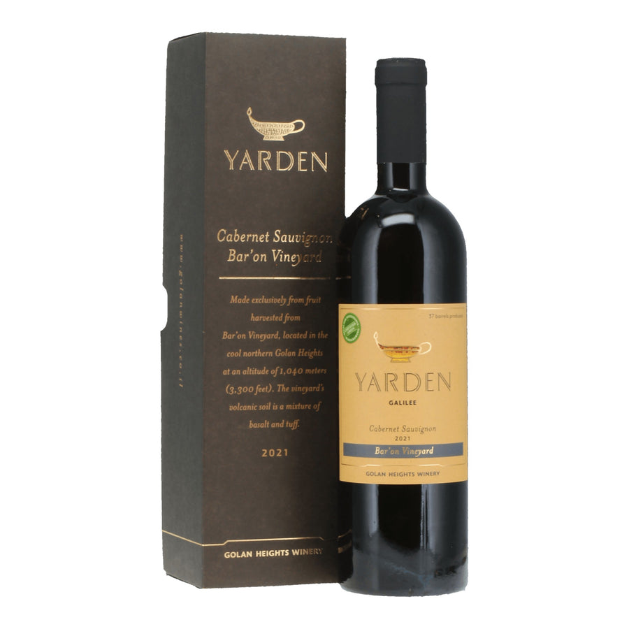 Yarden Cabernet Sauvignon 2021 - Baron Vineyard is a high-quality Israeli red wine from the Golan Heights Winery. Sourced from the prestigious Baron Vineyard, this Cabernet Sauvignon showcases the region's unique terroir. The 2021 vintage is full-bodied with vibrant flavors of ripe blackberries, cassis, and dark cherries, complemented by subtle hints of tobacco, spices, and cedar from oak aging. The wine is structured with firm tannins and a long, smooth finish, making it an excellent choice for aging or pairing with rich meats, grilled steaks, and strong cheeses. Its well-balanced acidity and complex profile reflect the exceptional quality of the Golan Heights region's climate and winemaking expertise.